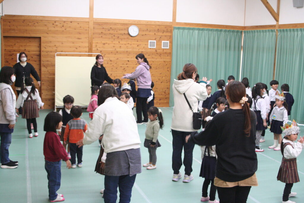音楽に合わせてお友だちとタッチをしたり、手をつないで一緒にジャンプしたりして仲良く踊ることが出来ましたよ!